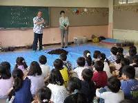 地域の方からカブトムシについて教えていただき、その後、カブトムシの幼虫を一匹ずつ分けました。成虫になるのが楽しみです。幼虫の入ったペットボトルを持っていると、ことことと動いているのを子どもたちは感じていました。(副校長)