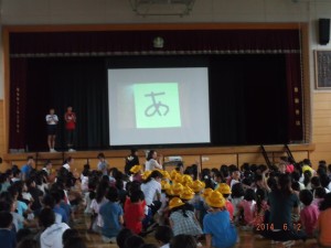 今日の集会では「ひらがなビンゴ」を全校で行いました。