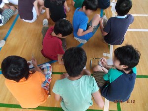 ピンゴが出るとあちらこちらから「イエーイ!」と歓声が上がり、外は朝からしとしと雨模様でしたが、体育館では子どもたちの楽しそうな声が響いていました。(安齋)