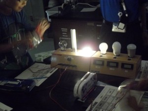 6年生は、企業の出前授業で、『あかりエコ』の体験学習をしました。手回し発電機で、白熱電球や蛍光灯、LEDをつけたり、それぞれのスイッチを押してから、明るくなるまでの速さや温かさを確かめたりしました。(杉本)