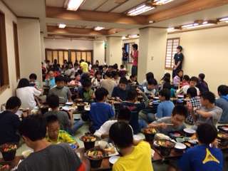 いっぱい食べて、キャンプファイヤーで燃え上がるぞー、オー!
