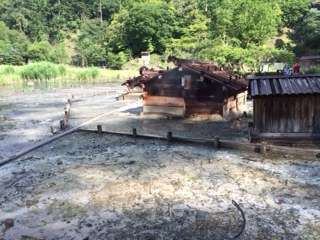 湯元源泉到着…宿舎のすぐ裏ですから…。ここから湧き出る硫黄泉のお風呂に昨日入ったわけですね。