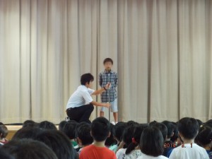 児童代表は、5年生が2学期の目標について堂々と発表しました。(安齋)