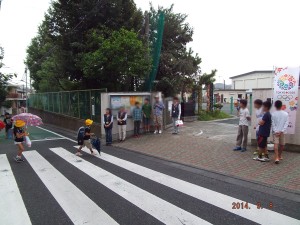 地域の方々や6年生が正門と南門であいさつを呼びかけています。