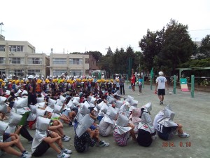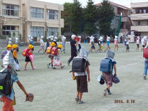 今月の避難訓練は、5時間目が終了して下校時に地震が発生したという設定で行われました。1年生から3年生は、教室で帰りの会をしていたり、すでに教室を出て廊下や玄関などで下校の途中だったりの状況でした。放課後にお世話になっているBOPの先生方にも参加していただきました。どんな時でも、近くにいる大人の指示に従い、落ち着いて行動できるようにしましょう。(杉本)