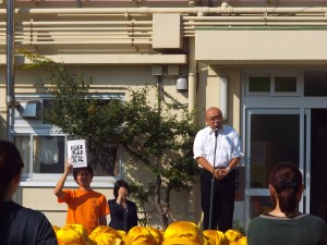爽やかな秋晴れの青空の下、全校朝会が行われました。各分野で活躍した児童の表彰に続き、校長先生からは、先週の体育の研究授業でがんばったこと、またそれだけでなく、休み時間にも元気に活動する松原の子は素敵だというお話がありました。また、今週は秋の交通安全週間でもあります。9月も残り1週間ですが、みんな元気で安全にすごしていきましょう。(杉本)