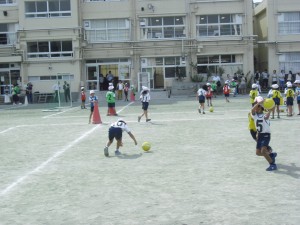 2年生は、校庭でボールゲームに取り組みました。チームで助け合い、声をかけ合ってゲームを楽しんでいました。準備や片づけも子どもたちで協力してできました。(杉本)