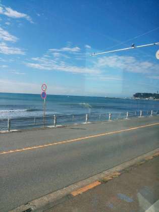 江ノ電の車窓から見えた海。