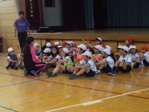 本時では、前時に続き、小型ハードルを使い、インターバルや高さの違いに応じたいろいろなリズムで走り越す楽しさを味わうことをねらいとしました。(杉本)