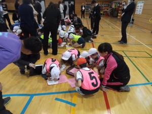 グループ毎に本時の取り組みをふり返り、学習カードに記入しました。全体の振り返りでは、教え合ったり協力し合ったりして、活動に参加できていたことなどが発表されました。授業後、講師の東京学芸大学教授鈴木秀人先生から、意欲的でのびのびと小型ハードル走に取り組んでいる3年2組の子どもたちをほめていただきました。(杉本)