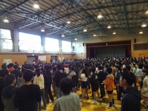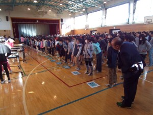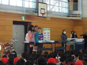 2学期最後の音楽集会の楽曲は、全員合唱『Oh Happy Day』でした。まずは、声を出すための準備運動を行った後、パートに分かれての練習をして、最後に手拍子をしながら全員で歌いました。とても難しい歌でしたが、全員の気持ちが一つになり、きれいな歌声が体育館に響き渡りました。(杉本)