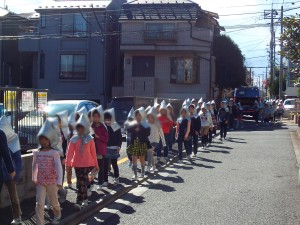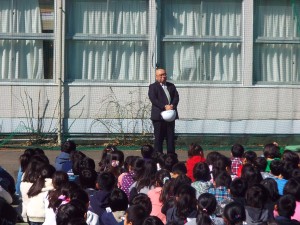 今年度最後の避難訓練は、学校の近隣で火事が発生し、2次避難をするという想定で行われ、避難場所である日本学園の校庭に向かいました。予告なしでの実施でしたが、1年間行ってきた避難訓練の成果がしっかり出ていました。(杉本)