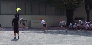 6年生は、学年体育で100m走のタイムを計測しました。(榊)