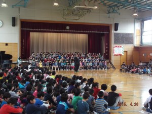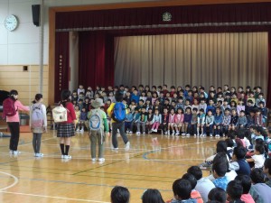 全校朝会は「1年生をむかえる会」でした。校長先生から、「松原小で結ばれた縁を大事にする1年にしましょう。」というお話がありました。代表委員会の発表、4年生からのプレゼント、1年生の合唱等楽しい会になりました。 (森)