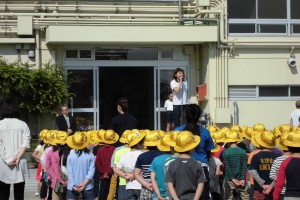 朝会で校長先生から「時刻を守り、時間を大切に使いましょう。」というお話がありました。学校の桜の木から作られている日時計が披露されました。主事さんが作ってくれています。完成したら全学級に配布される予定です。 (森)