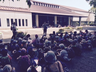 府中郷土の森に着きました。たくさんの小学校や幼稚園、保育園から子どもたちが遠足に来ています。でも、迷子にはなりません。