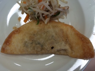 これが、昨日の給食、人気のジャンボ餃子です。一人1個ですが、給食調理さんたちは、全て手作りで650個近いジャンボ餃子を作ったわけです。一人1個でも、充分な大きさと調理さんたちの愛情で、満腹でした。