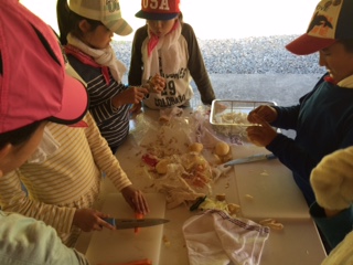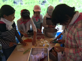 野菜を切ってカレーを作る係は女子が多い。なぜか?「男子には、任せられない。」「雑だしねー」「片付けながらって苦手そう」確かに、丁寧、手際よし!