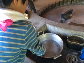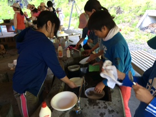 ごちそうさまをしたら、皿や鍋を洗います。と言ってもこれまた簡単な事ではありません。だって、川場の水は「つ〜めたいんだから」
