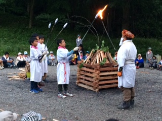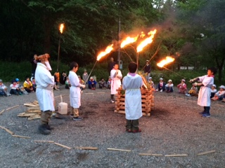 火と電気を便利に使いこなす人間は、自然を征服したわけではなく、感謝する心をもとうという話の後、松原小学校5年生に、情熱、努力、友情、団結の火を授けてくださいました。