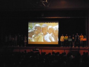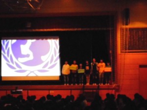 代表委員が、世界の支援を必要としている子ども達のことや、ユニセフ活動について調べたことをスクリーンを使って発表し、7月10日(金)から13日(月)まで行う募金の呼びかけをしました。 (森)