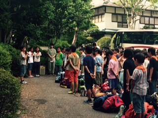 宿舎のホテル高照に到着です。林間学園の開室式をしました。また、ここでも児童代表の言葉も司会も立派!
