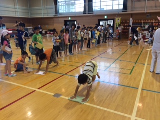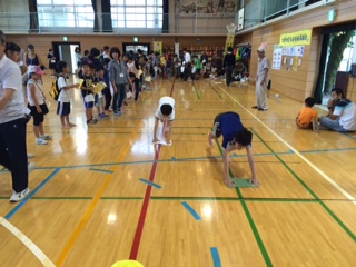 体育館では恒例の「雑巾がけレース」が開催されています。今年の1位は誰かな?(校長 石谷清隆)