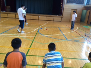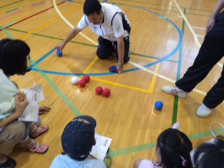 体育館のもう一つのイベントは「ボッチャ」です。ボッチャはパラリンピックの正式種目となり、健常者と一緒に競技ができる素敵なスポーツです。松原小学校は、東京都オリンピック・パラリンピック推進校に指定されている学校として、ボッチャを光明特別支援学校とともに広めていこうと考えています。