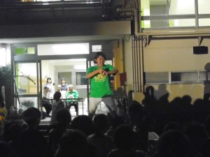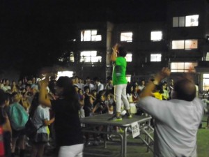 ダンスタイムになりました。参加者が一丸となって踊る「妖怪体操」です。思わず笑顔になってしまう愉快な歌詞の曲です。本校教員もこの日のために特訓を重ねてまいりました。思い出に残る楽しい一時となりました。(森)