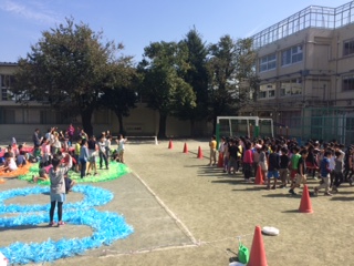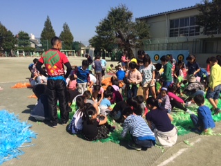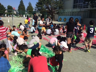2年生と5年生の共同作業です。5年生が2年生を優しくサポートしています。こんなところにも「思いやり」が感じられますね。