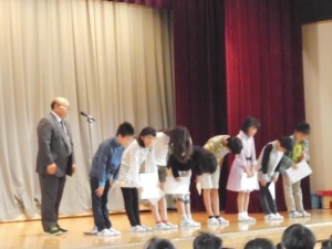 暗算や、読み取り算等、算盤で努力した児童達が表彰されました。(森)