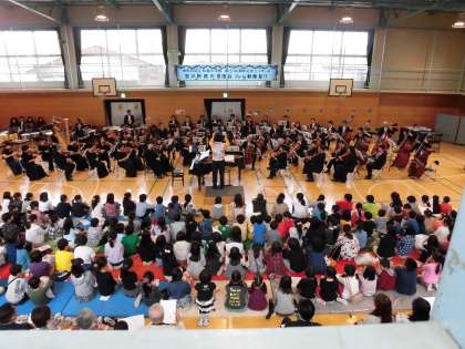 本校創立80周年を記念して「宮川彬良の世田谷フィル新発見!」と題する演奏会が開かれました。宮川彬良さんの指揮とピアノとお話、世田谷フィルハーモニー管弦楽団による演奏です。本校体育館はコンサートホールとなり、訪れた方々一人ひとりが音楽という愛に包まれ、幸せな時間を過ごしました。