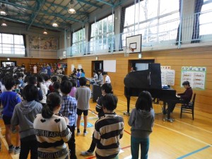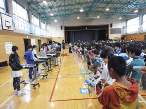 全学年が協同して「キリマンジャロ」を合奏しました。体育館が素敵な演奏で包まれました。(森)