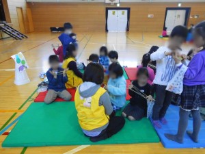 松原地区社会福祉協議会の方をお招きし、こま回し、けん玉、あやとり、折り紙などの昔遊びを体験しました。子どもたちはお話をよく聞き、昔遊びを楽しみました。 (伊藤)