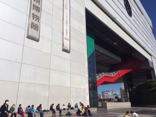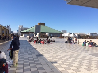江戸東京博物館に着きました。琴奨菊が話題の国技館を見ながらお昼のお弁当を食べましょう。江戸東京世田谷弁当だあい。