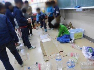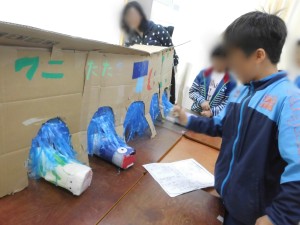 3年生は、やかんを使ったカーリングや人がコマになって進む巨大スゴロクなど、アイディアに溢れたお店を出しました。