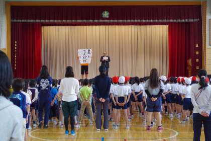 代表委員会からは運動会のスローガンが発表されました。今年のスローガンは「努力という名のコースを走り 勝利という名のゴールをめざせ」です。(真田)