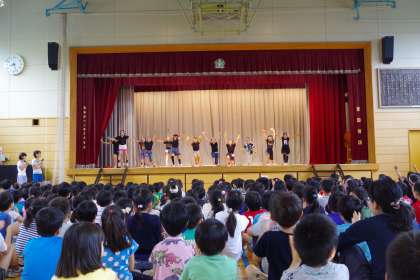2年生は「ヨッシャ来い!」を披露しました。鳴子とねじりはちまきがきまっています。(真田)