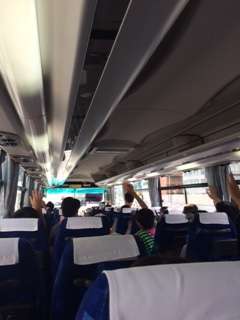 バスレク係さんが事前に準備したクイズや絵しりとりを楽しんでいます。