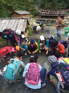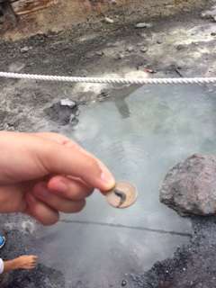 前田先生からお話があった、すっごいものを見つけました。ぶくぶく湧いてくる源泉の中で動くものが…(志村有香)