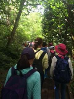 太陽が出ているのに、雨がポツポツ。今は止みました。さあ、ハイキングスタートです!木陰は涼しくて気持ちが良いです。