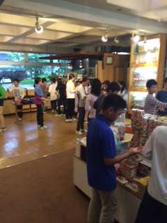 今度は1組のお土産タイムです。またまた計算機片手に真剣そのものです。早く買い物を終える子もいれば、時間いっぱい使って悩み抜いている子もいれば、様々です。自分のお土産や家族へのお土産、ぜひ楽しみにしていてください!(志村有香)