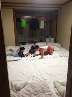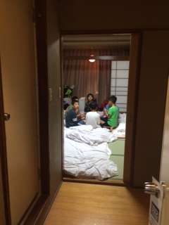 シャワーを浴びて、就寝時間までを静かに過ごしています。明日の準備もしています。明日は日光江戸村。さっそくどこを回ろうか話しあっている子たちもいました。