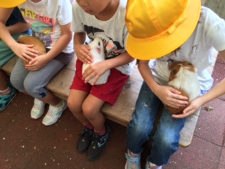 モルモットをひざに抱っこしました。背中を優しくなでると「気持ちいー!」って言ってるような気がしたよ。