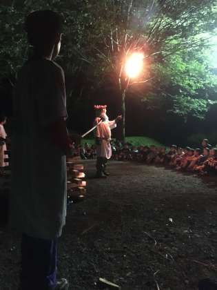 火の神により努力の火、友情の火、団結の火を授かりキャンプファイヤーが始まりました。火の勢いに負けず、キレッキレのダンスで盛り上がっています。(真田)
