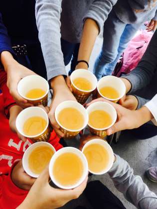 その前にりんごと、りんごジュースを頂きます。おいしさにびっくり!