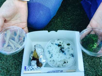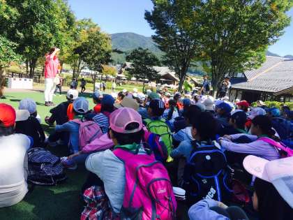 田園プラザに着きました。川場移動教室、皆で食べる最後の食事です。青空の下で頂きます。(真田)