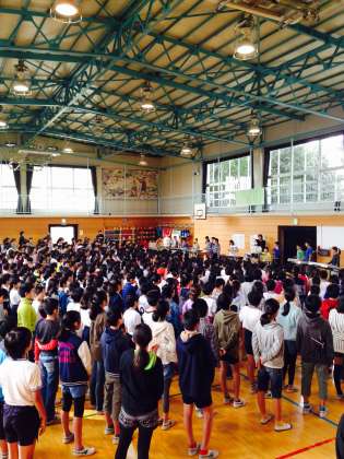 ソプラノとアルトに分かれ、音色の重なりを楽しみます。前期音楽委員のメンバーによる最後の生演奏でした。これまで早朝練習を重ねてきた演奏が、全校児童の歌声と合わさってより素敵な音楽となって流れました。(真田)