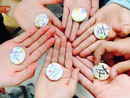 理科室では、青少年松原地区委員の方と、日本学園のボランティアの方による缶バッチ作りが行われています。お揃いのものを作り、楽しんでいる姿が見られました。(真田)