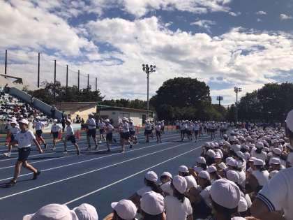 本日、世田谷区内の6年生が総合運動場に集まり、連合運動会が行われました。まぶしいほどの太陽のもと、爽やかな汗を流しました。(山之内)